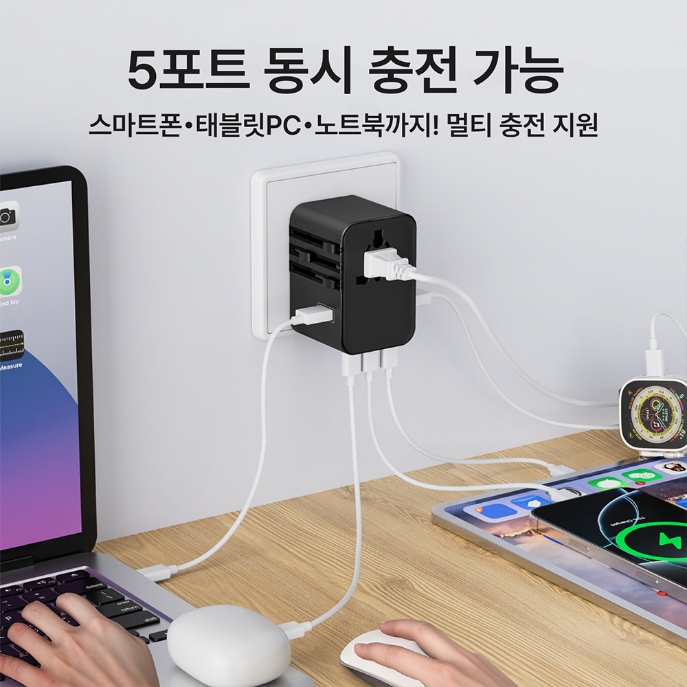 ¸£¿þÀÌ GaN 45W 5Æ÷Æ® ¿©Çà¿ë ¸ÖƼ Ç÷¯±× ¾î´ðÅÍ 2500W JY313